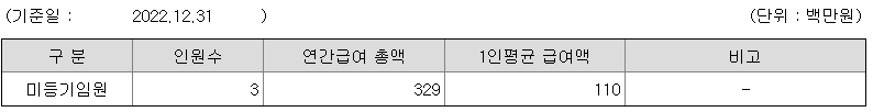 미등기임원의 평균연봉은 1억 1000만원이고 직원수는 3명입니다.