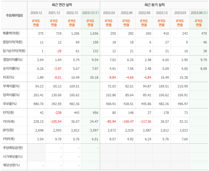 2022년 매출은 1206억, 영업이익은 69억, 당기순이익은 61억입니다. 그리고 영업이익률은 5.74%입니다.