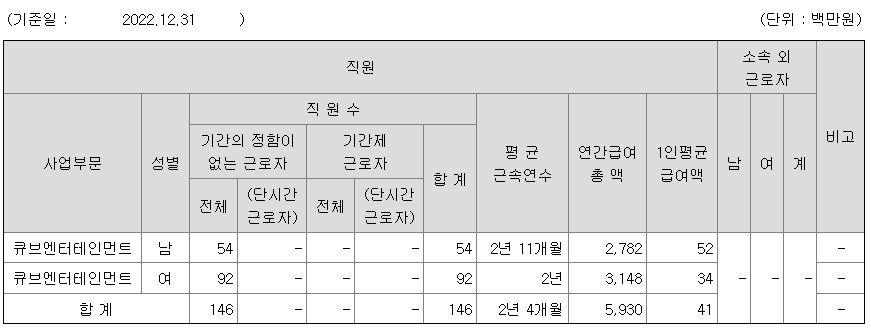 | 큐브엔터테인먼트 | 여 | 92 | 2년 | 34 |