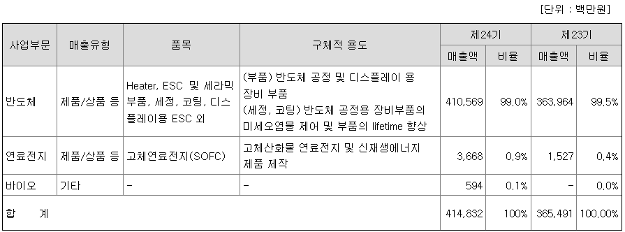 주요 제품은 연결회사의 주요 사업부문의 수익성에 중요한 영향을 미치는 제품 및 상품이며, 연결기준으로 작성되었습니다.