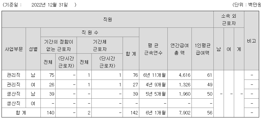 전체 평균연봉은 5600만원이고 직원수는 142명입니다.