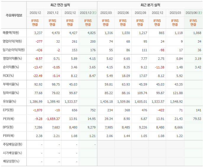 2022년 매출은 4427억, 영업이익은 261억, 당기순이익은 153억입니다. 그리고 영업이익률은 5.89%입니다.