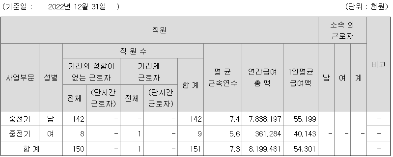 미등기임원의 평균연봉은 1억 7000만원이고 직원수는 8명입니다.