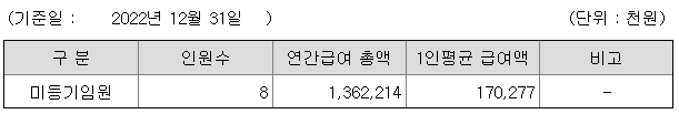 미등기임원의 평균연봉은 1억 7000만원이고 직원수는 8명입니다.