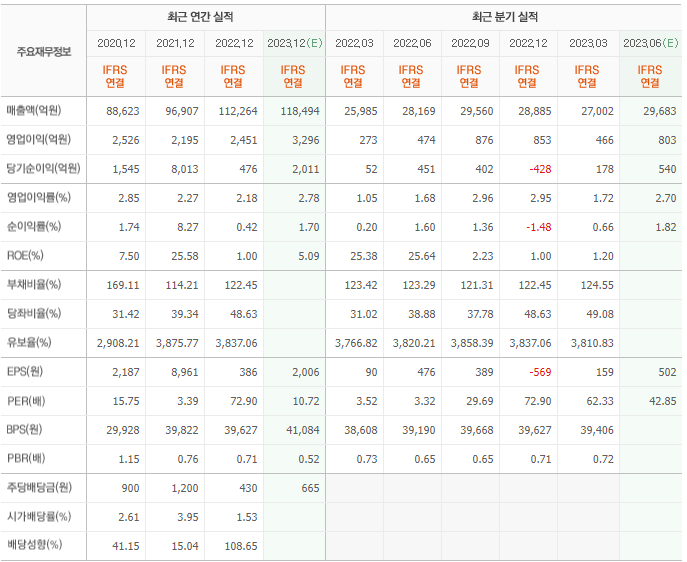 2022년 실적은 11조 2264억, 영업이익은 2451억입니다. 그리고 영업이익률은 2.18%입니다.
