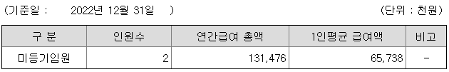 미등기임원의 평균연봉은 6500만원이고 직원수는 2명입니다.