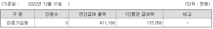 미등기임원의 평균연봉은 1억 3700만원이고 직원수는 3명입니다.