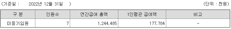 미등기임원의 평균연봉은 1억 7700만원이고 직원수는 7명입니다.