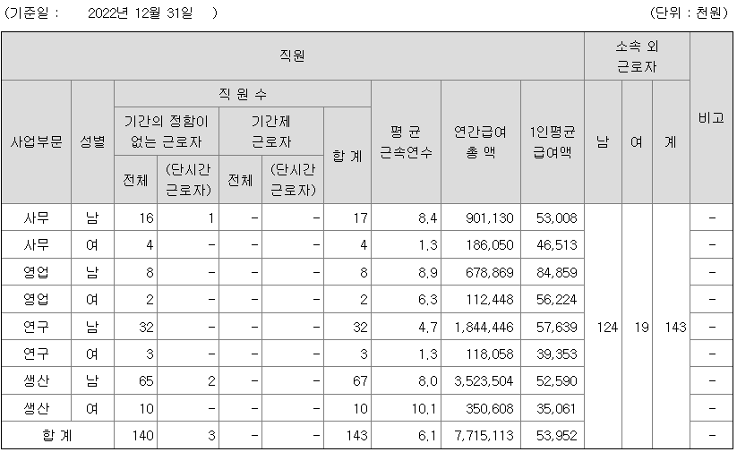 전체 평균연봉은 5300만원이고 직원수는 143명입니다.