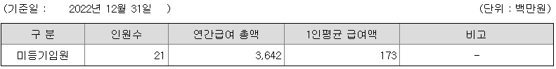 미등기임원의 평균연봉은 1억 7300만원이고 직원수는 21명입니다.