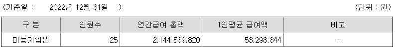 미등기임원의 평균연봉은 5300만원이고 직원수는 25명입니다.