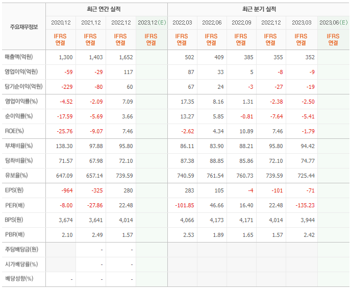 2022년 매출은 1652억, 영업이익은 117억, 당기순이익은 60억입니다. 그리고 영업이익률은 7.09%입니다.