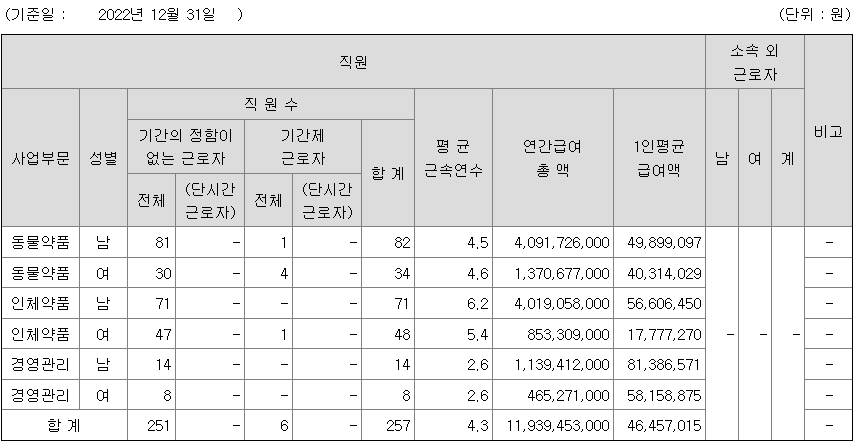 씨티씨바이오 연봉 2022년 기준 공시자료