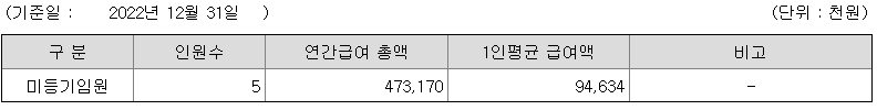 미등기임원의 평균연봉은 9400만원이고 직원수는 5명입니다.
