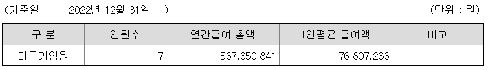 미등기임원의 평균연봉은 7600만원이고 직원수는 7명입니다.