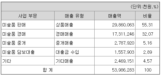 당사는 미술품을 주로 경매 또는 중개를 통하여 판매하는 사업을 영위하고 있습니다.
