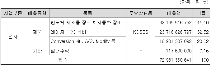 각종 모바일 디바이스에 반도체가 장착되면서 패키지 모양이 곡선화로 변화함에 따라 정교한 커팅 기술이 필요하게 되었으며, 당사가 보유한 레이저 커팅 기술 수요가 급증함에 따라 레이저 커팅 장비의 매출 성장세가 두드러지고 있습니다.