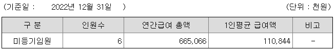미등기임원의 평균연봉은 1억 1000만원이고 직원수는 6명입니다.