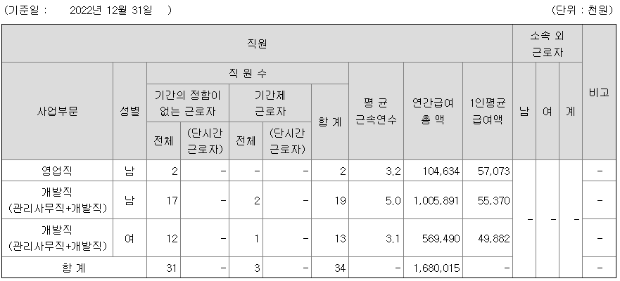 전체 평균연봉은 5200만원이고 직원수는 34명입니다.