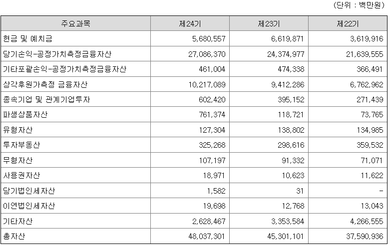 지난 2022년은 미국의 빅스텝 및 국내 기준금리 인상, 러시아와 우크라이나의 전쟁, 부동산 시황 악화 등 비우호적인 시장 환경이었습니다. 이에 따라 K-IFRS 연결기준 당사는 2022년 영업이익 6,564억원, 당기순이익 5,082억원을 시현하며 전년 대비 각각 45.7%, 44.2% 감소한 값을 달성하였습니다.