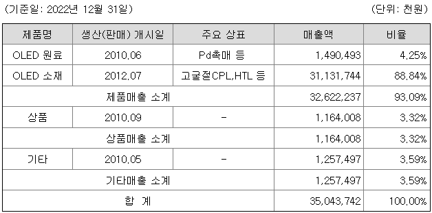 기존의 LCD와 달리 OLED는 얇은 박막형의 디스플레이 구현, 효율적인 전력 사용, 풍부한 색채 표현력이 가능하여 디스플레이 산업의 중심으로써 시장을 선도하고 있습니다. 이러한 OLED의 소재는 산업 초기 기술력의 차이 등으로 인해 해외 의존도가 높았지만, 당사를 비롯한 국내 OLED 업체의 십수년 간의 끊임없는 연구개발로 점차 OLED소재의 국산화가 이루어지고 있습니다.