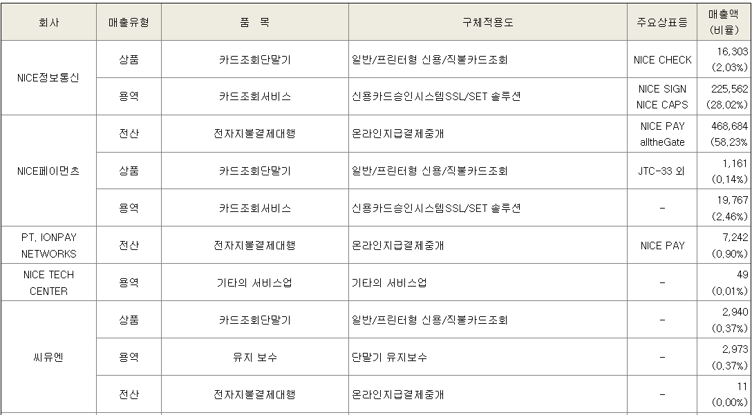 NICE정보통신은 Total Payment Service Provider로서 카드조회단말기 상품판매 및VAN사업과 그에 연관된 신사업(택스 리펀드 등)을 수행하고 있습니다.