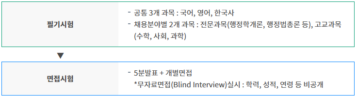 ※ 시험과목은 직렬(직류)별로 차이가 있습니다. 예시로 나와있는 일반행정, 세무, 교정, 검찰 이외에도 다른 직렬(직류)들이 있으니 자세한 내용은 시험공고문을 확인하시기 바랍니다.