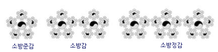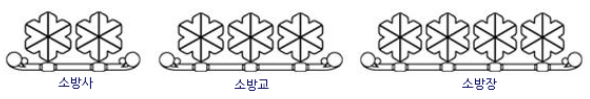 - 소방사·소방교·소방장 : 소방사는 육각수 2개, 소방교는 육각수 3개, 소방장은 육각수 4개입니다.
