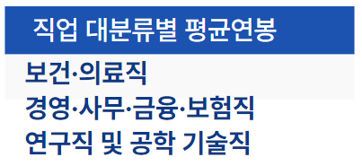 직업을 대분류로 구분했을 때 가장 높은 연봉을 받는 직업군은 평균 6,840만 원을 받는 보건·의료직으로 조사됐습니다. 그다음으로는 경영·사무·금융·보험직으로 5,046만 원, 연구직 및 공학 기술직이 4,667만 원으로 그 뒤를 이었습니다.