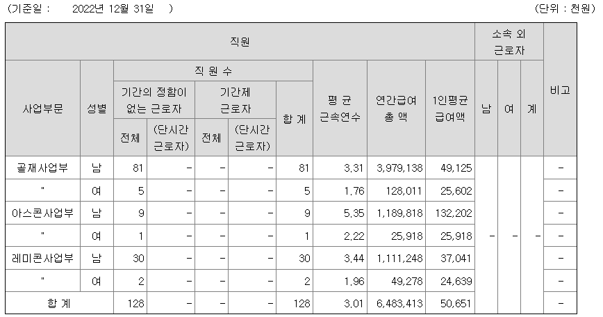 전체 평균연봉은 5065만원이고 직원수는 128명입니다.