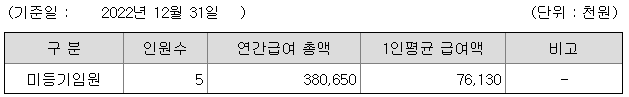 미등기임원의 평균연봉은 7613만원이고 직원수는 5명입니다.