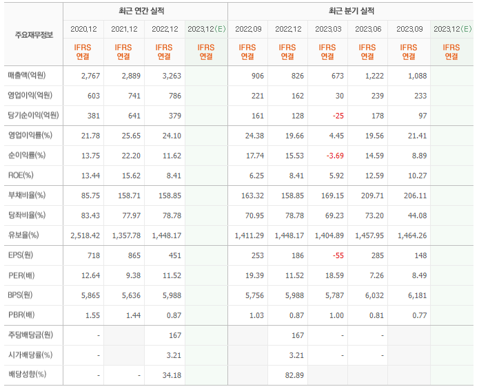2022년 매출은 3263억, 영업이익은 786억, 당기순이익은 379억입니다. 그리고 영업이익률은 24.10%입니다.