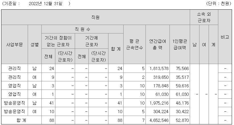 전체 평균연봉은 5287만원이고 직원수는 88명입니다.