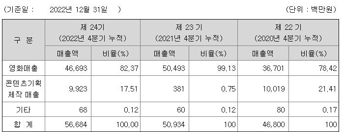당사는 1999년 6월에 (주)미디어플렉스로 설립되어 메가박스 씨네플렉스로 영화 상영 및 영화관 운영을, 쇼박스 브랜드로 영화 투자 및 배급 사업을 진행하였습니다. 2007년 7월 메가박스를 매각하면서 영화 투자와 배급, 제작 기획에 역량을 집중하였고,이후 중국을 비롯한 해외 및 신규 비즈니스 확대를 진행하고 있습니다.