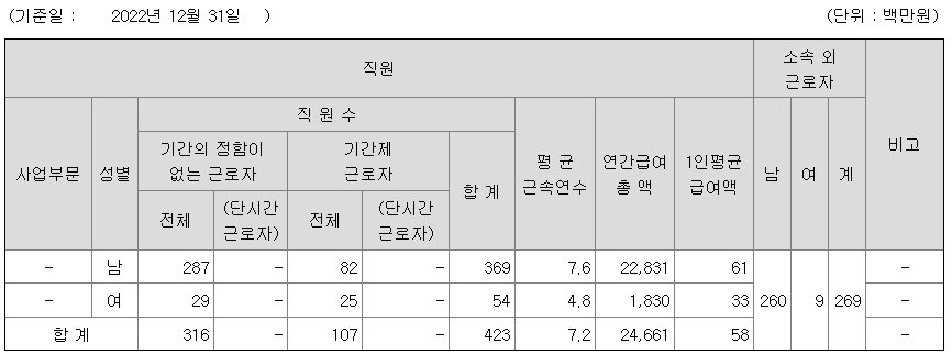 비에이치아이 연봉 2022년 기준 공시자료