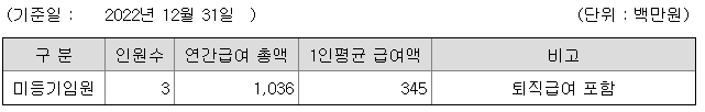 미등기임원의 평균연봉은 3억 4500만원이고 직원수는 3명입니다.