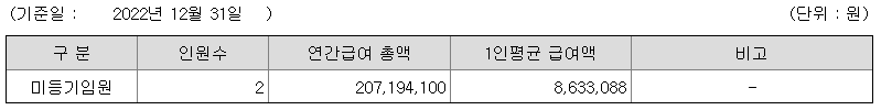 미등기임원의 평균연봉은 863만원이고 직원수는 2명입니다.