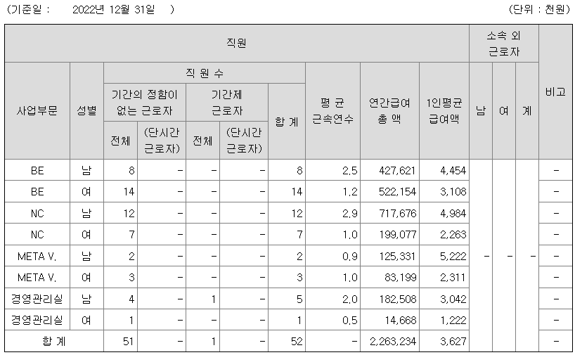 엔피 연봉 2022년 기준 공시자료