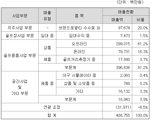 회사는 다른 회사의 주식을 소유함으로써 그 회사를 지배하는 것을 목적으로 하고 있으며, 영업수익은 브랜드의 사용으로 인한 로열티 수익, 자회사의 경영자문제공으로 인한 자문수수료 수익, 투자부동산의 임대를 통한 임대료 수익, 자회사로부터 지급받는 배당금 수익, 지분법이익 등으로 구성되어 있습니다.