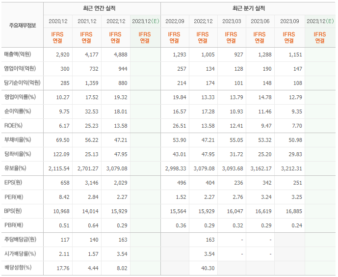 2022년 매출은 4888억, 영업이익은 944억, 당기순이익은 880억입니다. 그리고 영업이익률은 19.32%입니다.