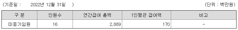 미등기임원의 평균연봉은 1억 7000만원이고 직원수는 16명입니다.
