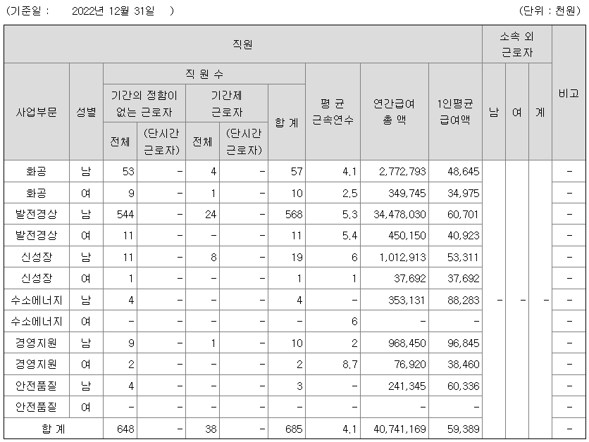 전체 평균연봉은 5938만원이고 직원수는 685명입니다.