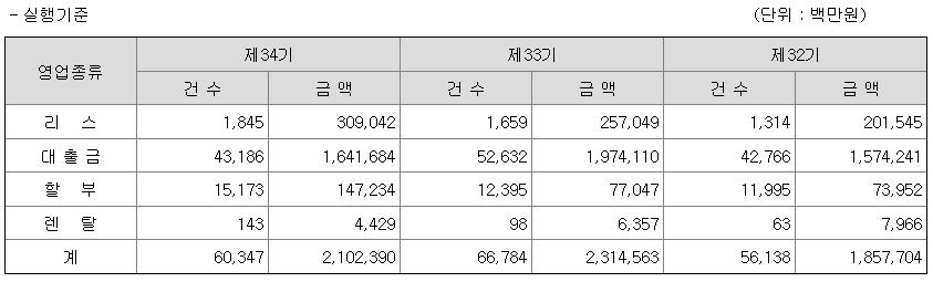 여신전문금융업은 시설대여업, 신용카드업, 할부금융업, 신기술금융업 등이 통합된 금융업종으로 수신기능 없이 채권 발행, 금융기관 등으로부터의 차입, 자본금 등을 통해 조달된 자금으로 여신을 제공하는 것을 주업무로 영위하고 있습니다.