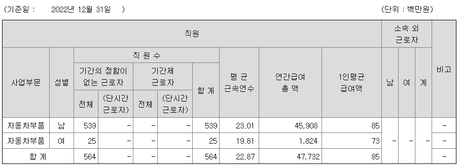 Plastic Bumper의 경우 22년 매출 4,511억을 달성하며 국내 시장 일등 지위를 확고히 하고 있습니다. 또한 당사는 전기차 시대를 맞이하여 신기술 신제품 개발을 통해 사업 경쟁력을 한층 강화하고 국내 뿐만이 아닌 글로벌 일위 기업으로 나아가 시장을 선도해 나갈 계획입니다.