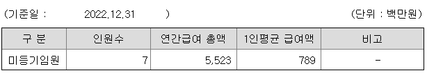미등기임원의 평균연봉은 7억 8900만원이고 직원수는 7명입니다.
