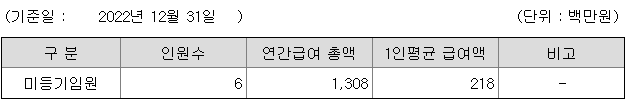 미등기임원의 평균연봉은 2억 1800만원이고 직원수는 6명입니다.