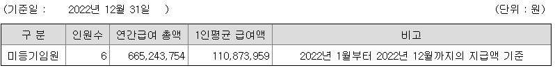 미등기임원의 평균연봉은 1억 1087만원이고 직원수는 6명입니다.
