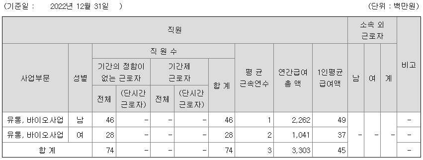 미등기임원의 평균연봉은 1억 3300만원이고 직원수는 2명입니다.