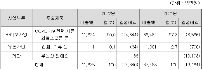당사는 2016년 8월 신규 사업 진출의 일환으로 잡화류(해외 유명 브랜드 가방 등) 수입 병행을 통한 도소매 및 의류 등의 도소매 사업을 수행하고 있으며, 경쟁력 있는 해외 유명 브랜드(코치, 키플링 등) 상품을 중심으로 판매망을 구축하여 국내 홈쇼핑 및 인터넷을 통해 판매하고 있습니다.