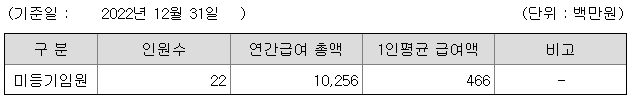 미등기임원의 평균연봉은 4억 6600만원이고 직원수는 22명입니다.